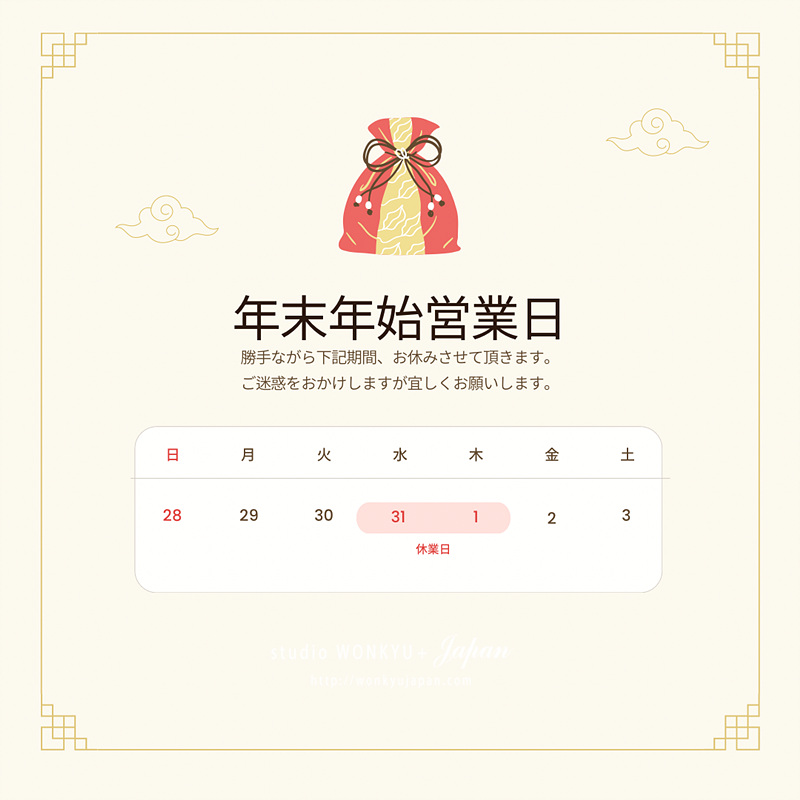 いつもStudio Wonkyu+Japanをご自愛頂き、誠にありがとうございます。